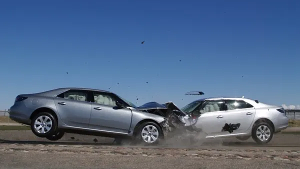 Collision frontale, mettant en évidence la robustesse et les technologies de sécurité des voitures Saab.